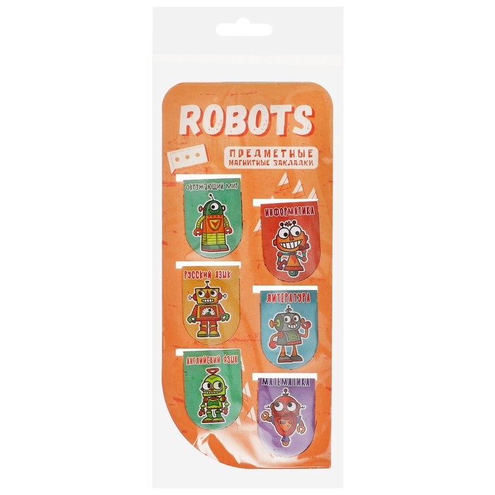 Закладка магнитная 6 шт "Роботы", (25х35мм в сложен виде), на подложке