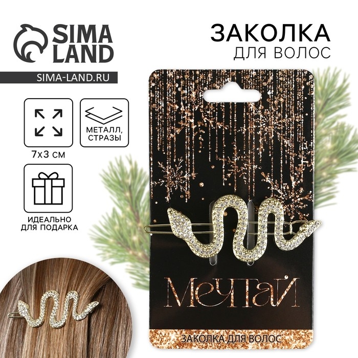 Заколка для волос новогодняя «Мечтай», на Новый год, 6,5 х 12 см