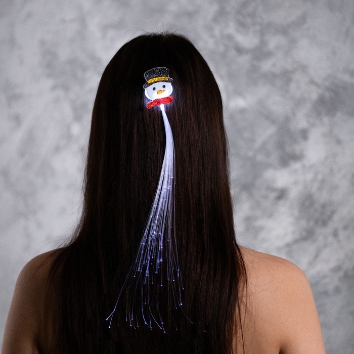 Заколка для волос светодиодная "Снеговик" 33x4 см, 1 LED, батарейки LR1130x2 (в комплекте), свечение белое