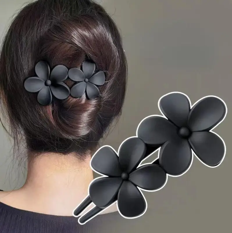 Заколка-краб матовый цветок черный