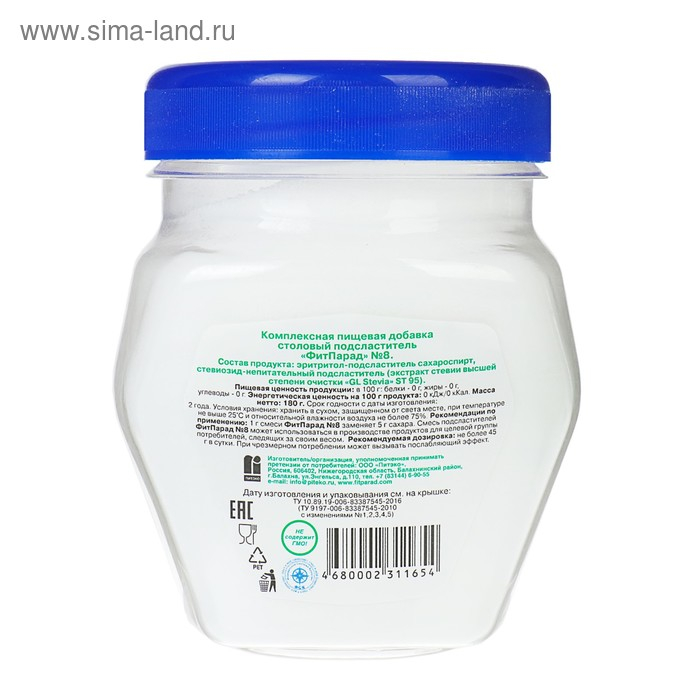 Заменитель сахара Fitparad №8 на стевии и эритрите, 180 г