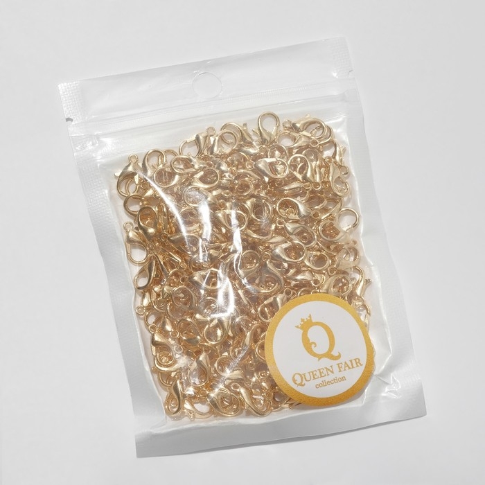 Замок-карабин 12 мм, набор 200 шт., цвет золото