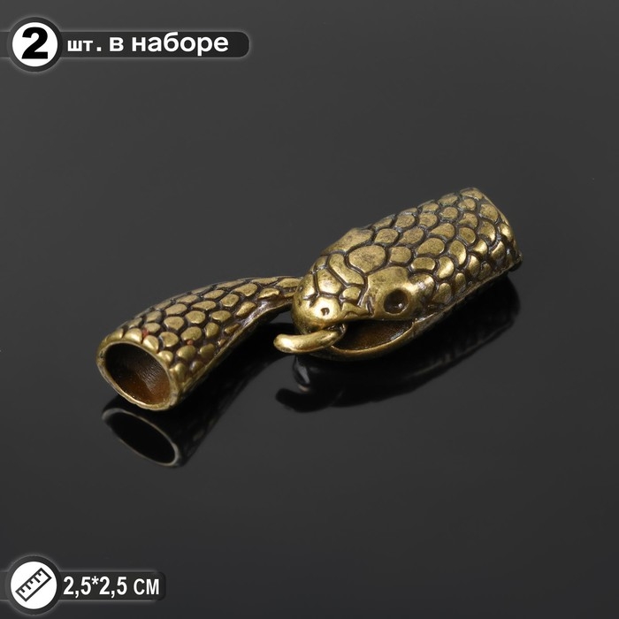 Замок-концевик "Змея", 36-12мм (внутр. 6,5мм), крючок с ответной частью, (набор 2шт), цвет бронзовый