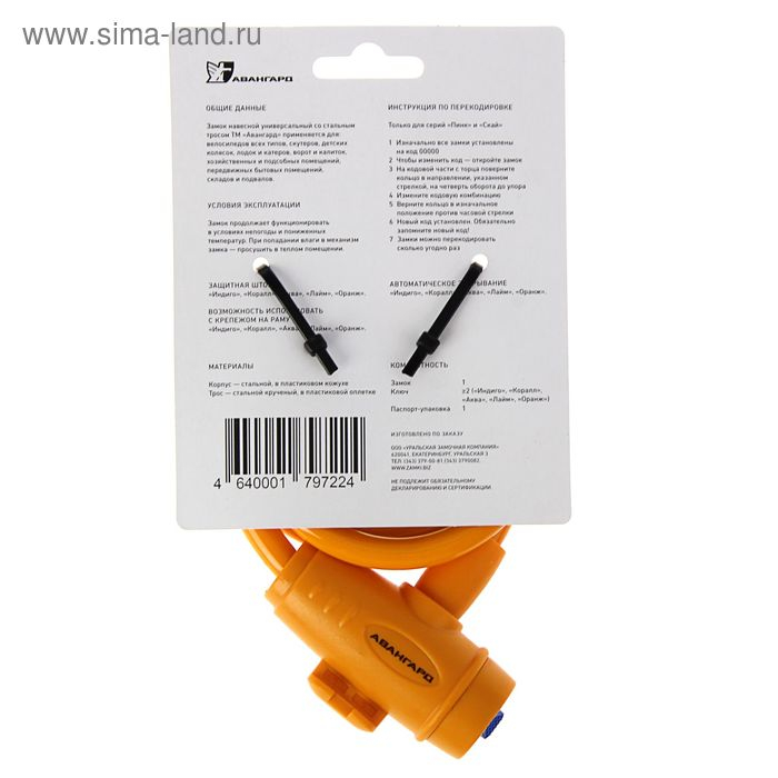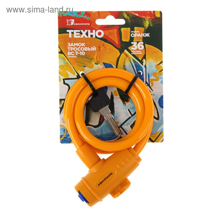 Замок навесной "АВАНГАРД" ВС-Т10 Техно Оранж, с тросом, 1000 мм