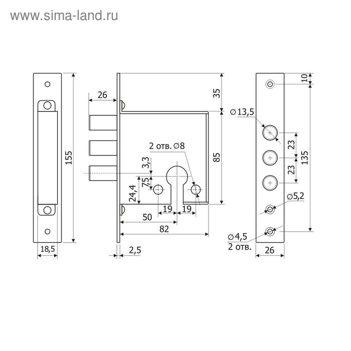 Замок врезной VZ001, 3 ключа