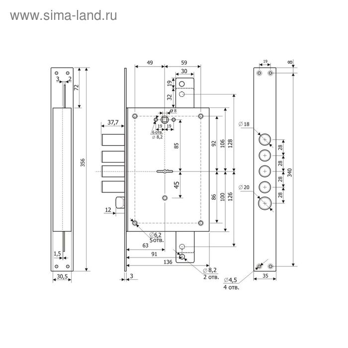 Замок врезной "Гардиан" 2112Т, сувальдный, с защелкой, 5 ключей