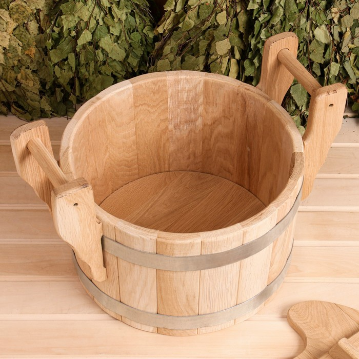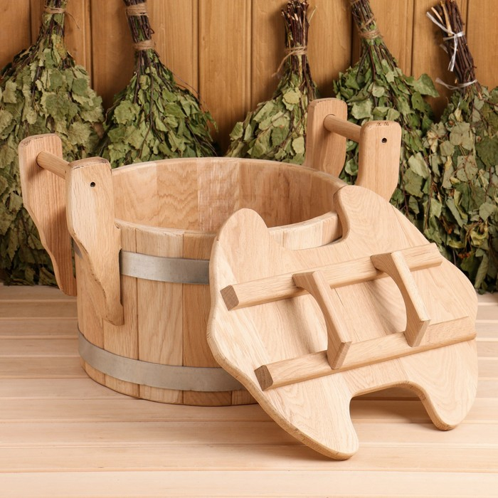 Запарник из дуба, премиум, 23л, с крышкой, на два веника