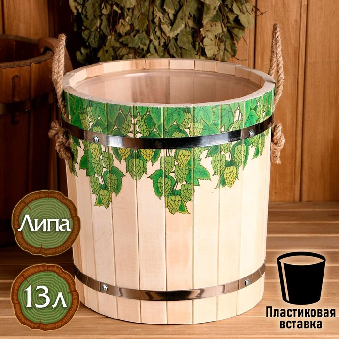 Запарник-ведро из липы, 10 л, пластиковая вставка, без крышки