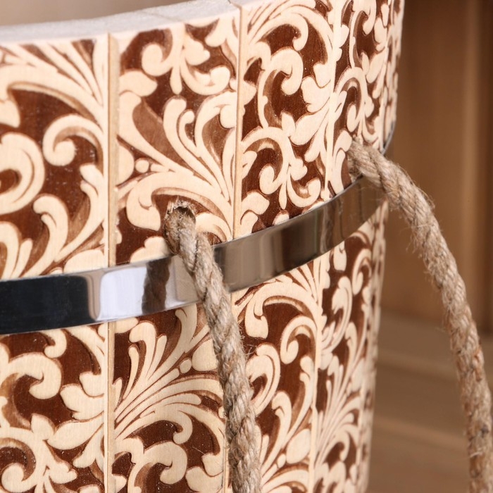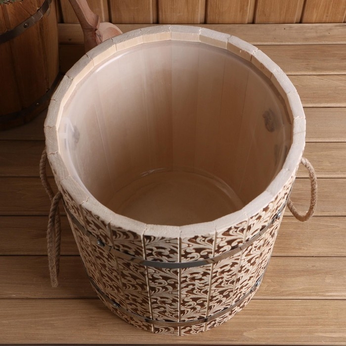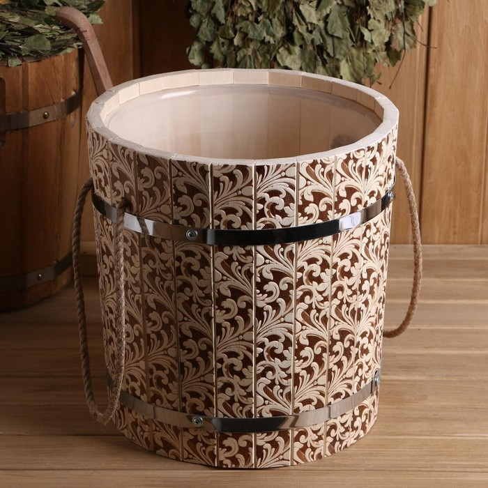 Запарник-ведро из липы, 10 л, с пластиковой вставкой, "Русские узоры"