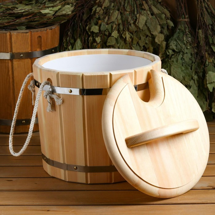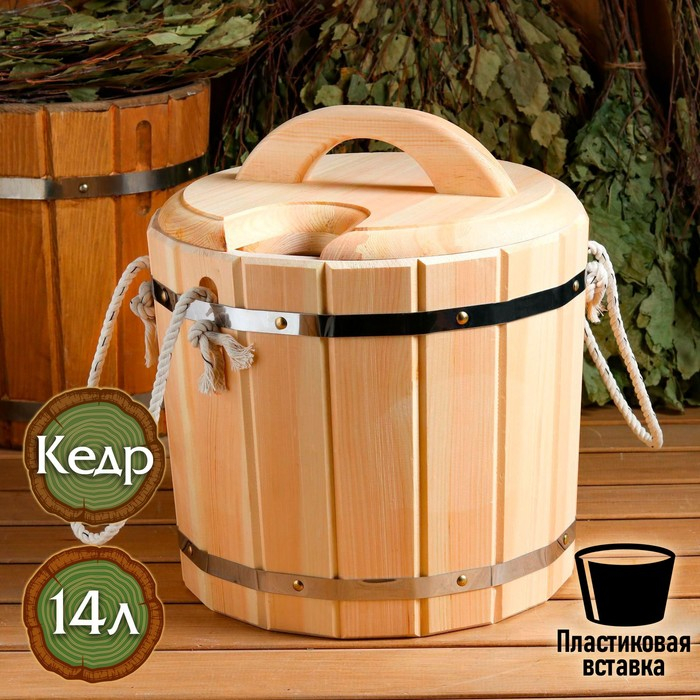 Запарник кедровый, 14 л , пластиковая вставка, с крышкой