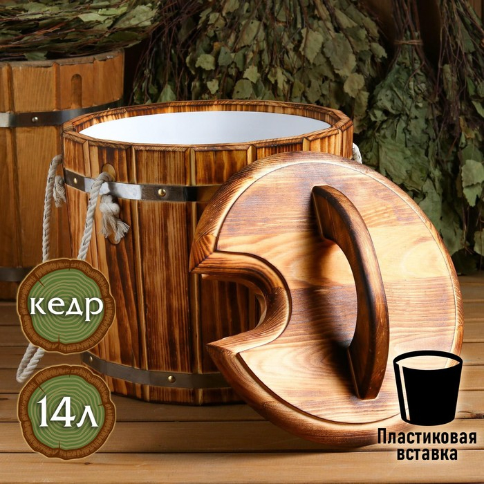 Запарник кедровый, 14 л, с пластиковой вставкой, с крышкой, термодревесина ЛЮКС