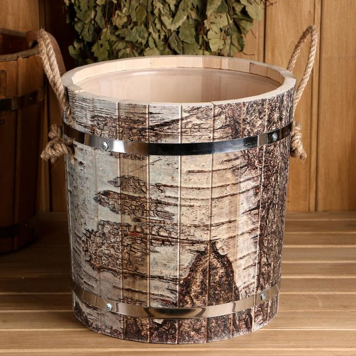 Запарник-ведро из липы, 13 л, пластиковая вставка, ручки веревки, "Берёзовая кора"