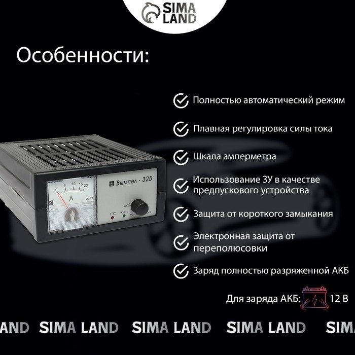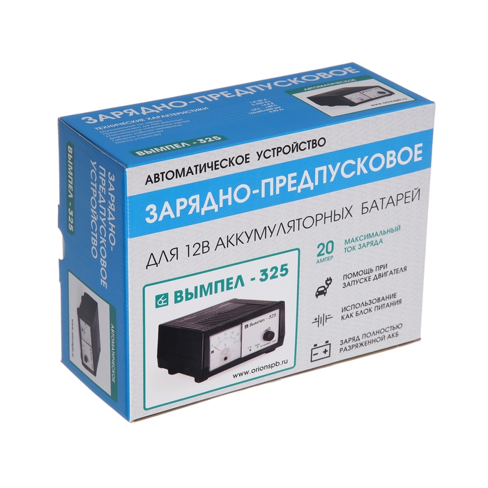 Устройство АКБ «Вымпел-325» отлично справляется с поставленными задачами. Подходит для заряда 12 В автомобильных и мотоциклетных аккумуляторных батарей любого типа и ёмкости. Ток автоматически уменьшается в конце работы, что делает данную модель особенно безопасной в использовании. Также вы самостоятельно можете регулировать силу тока. Зарядное устройство АКБ «Орион-325» не подведёт вас в критической ситуации!