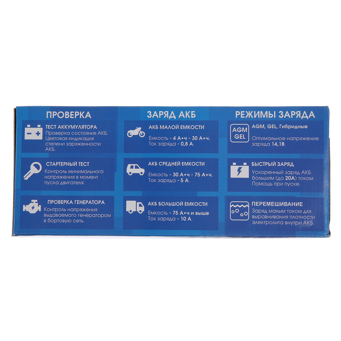 - Производит десульфатацию АКБ, увеличивает ресурс