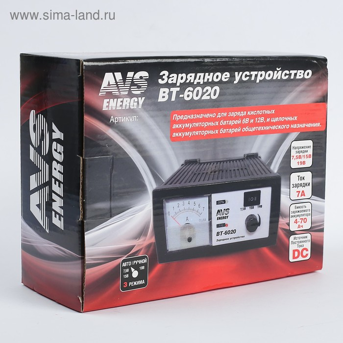 Зарядное устройство для АКБ AVS BT-6020, 7 A, 6-12 В