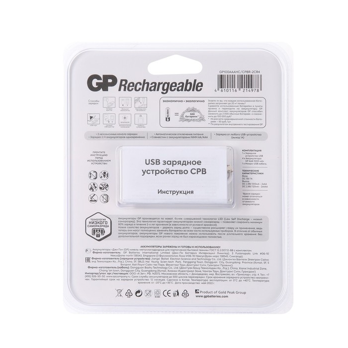 Зарядное устройство GP для AA/AAA + 4 аккумулятора AAA 1000 мАч