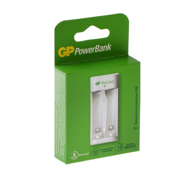 Зарядное устройство GP E211, для аккумуляторов 2хAA/AAA, белый