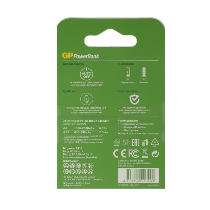 Зарядное устройство GP E411, для аккумуляторов 4хAA/AAA, белый