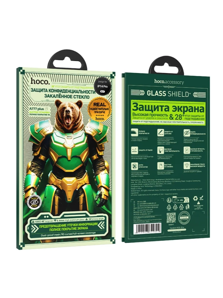 Защитное стекло HOCO A777 Plus — это современное решение для защиты экрана вашего телефона, сочетающее в себе передовые технологии защиты и удобство использования. Антишпионская функция обеспечивает конфиденциальность при использовании устройства в общественных местах, а высокое качество материалов гарантирует длительный срок службы.