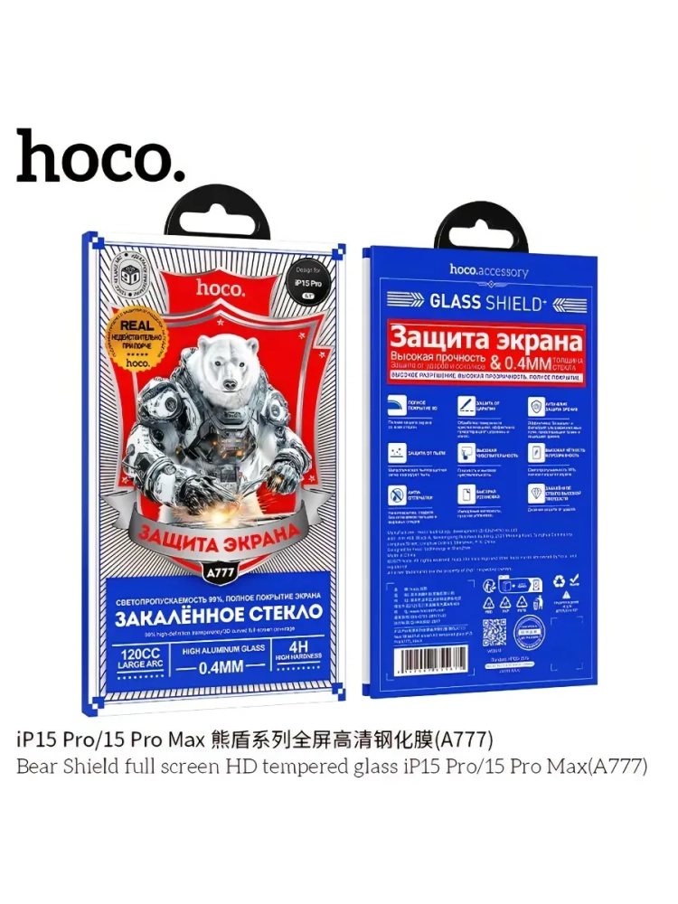 Противоударное оригинальное защитное стекло Hoco A777 для Apple iPhone 15Pro - лучшее качество, проверенное временем!