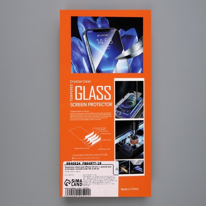 Защитное стекло для iPhone 13 mini, с рамкой для установки, полный клей, 9H, 0.33 мм