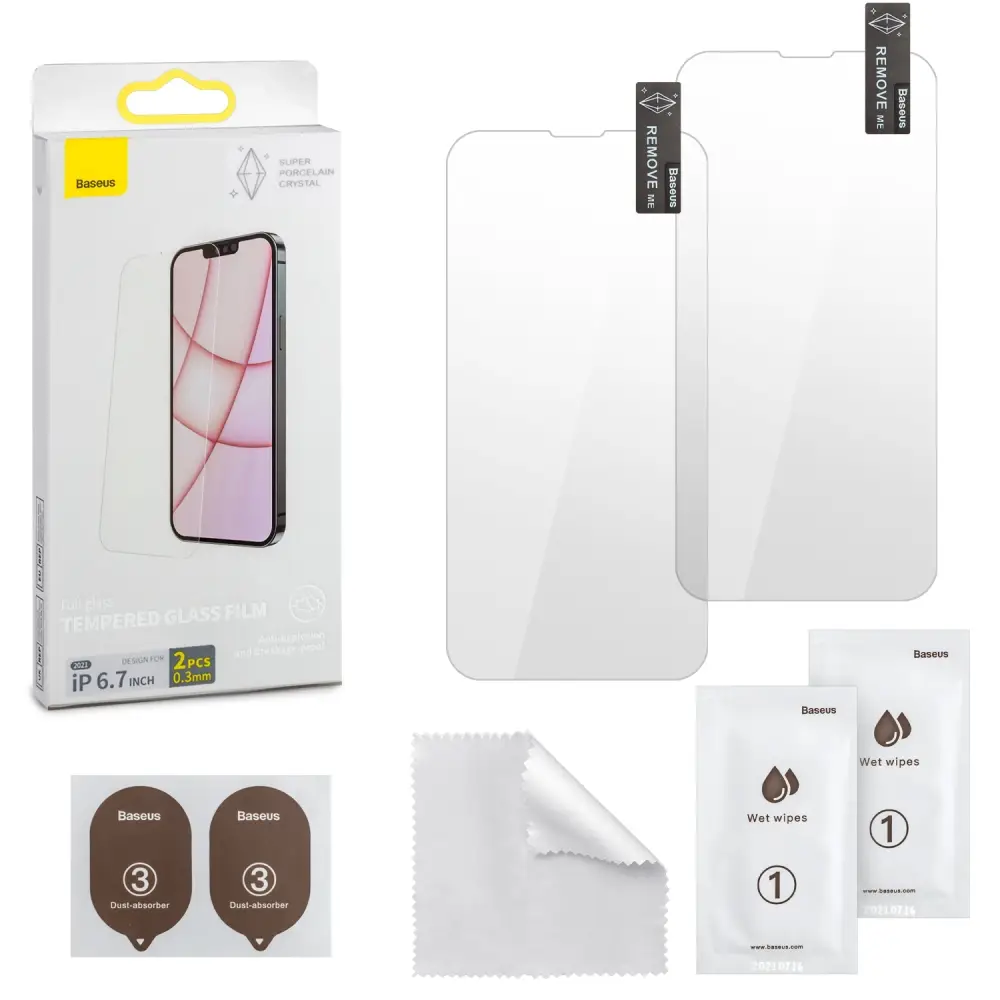 Защитное стекло iPh 13 Pro Max 6.7 (2021) 0.3mm 2 шт без рамки Super Porcelain Crystal Baseus SGBL030202