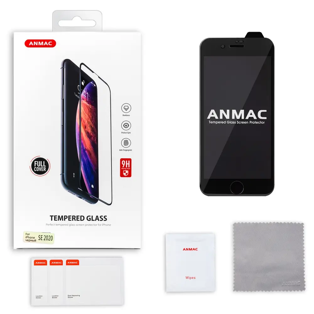 Защитное стекло iPh SE(2020) Full Cover ANMAC черное Арт.1137213
