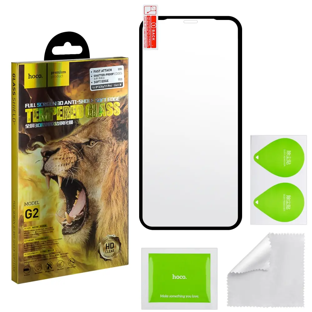 Защитное стекло Iph X/XS/11 Pro 3D G2 HOCO черное