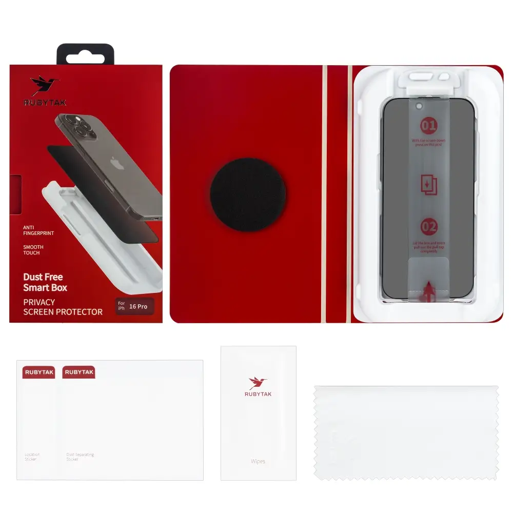 Защитное стекло RUBYTAK iPh 16 Pro Privacy с аппликатором