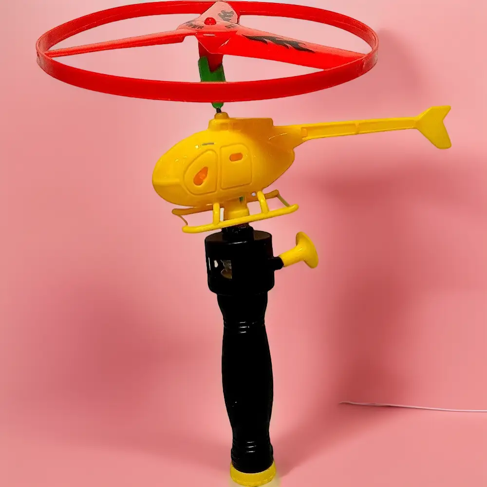 Запустите вертолёт одним движением: резко потяните ремешок — и игрушка взлетает вверх! Механизм не требует батареек, идеален для игр на свежем воздухе: парки, пляжи, дачные участки.