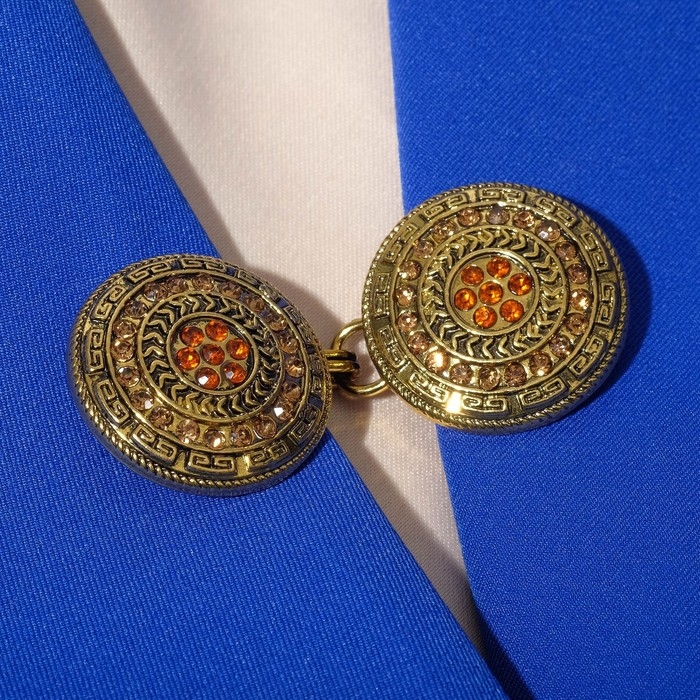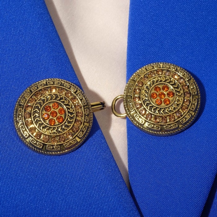 Зажим для кардигана «Круг» в орнаментах, цвет золото в чернёном золоте