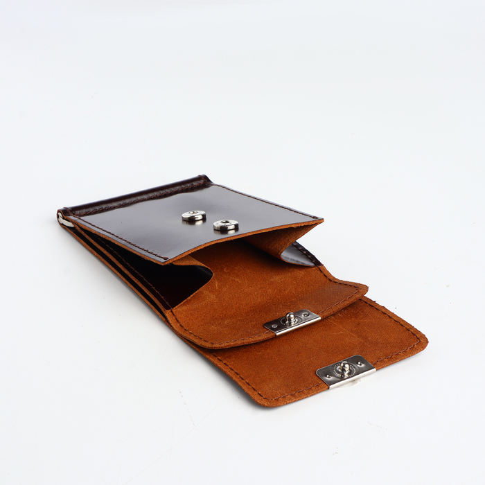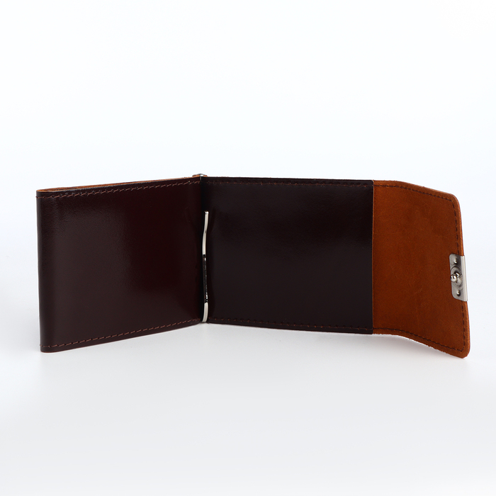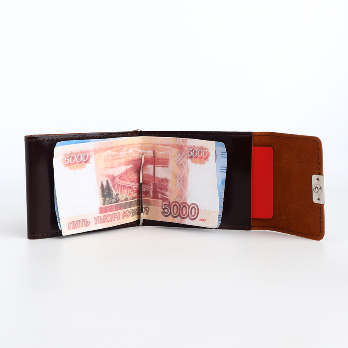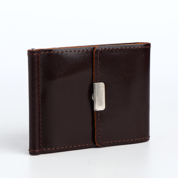 Зажим для купюр на кнопке, для монет, для карт, цвет коричневый