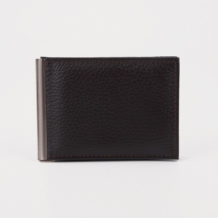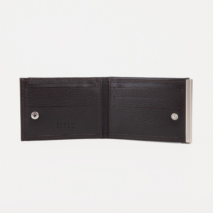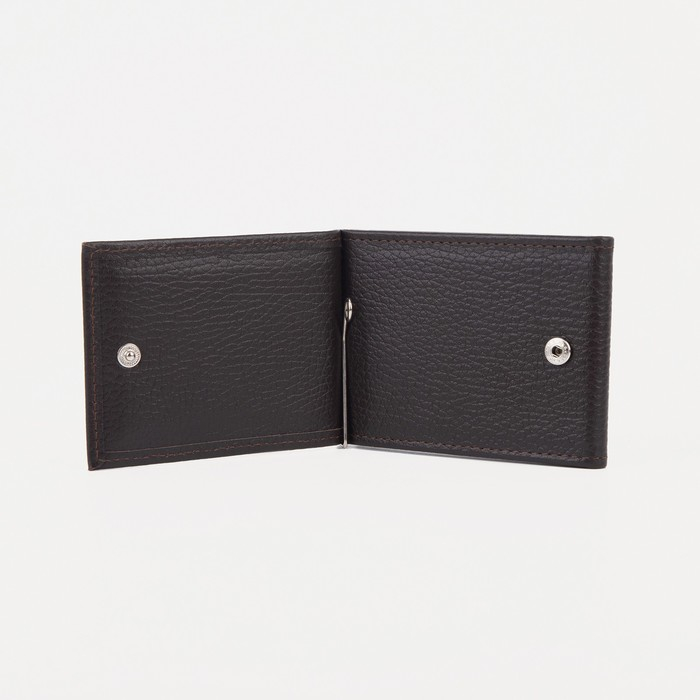 Зажим для купюр с металлическим держателем, отдел для карт, наружный карман, цвет коричневый