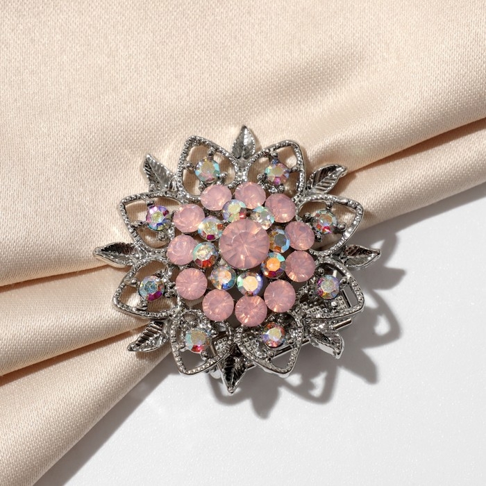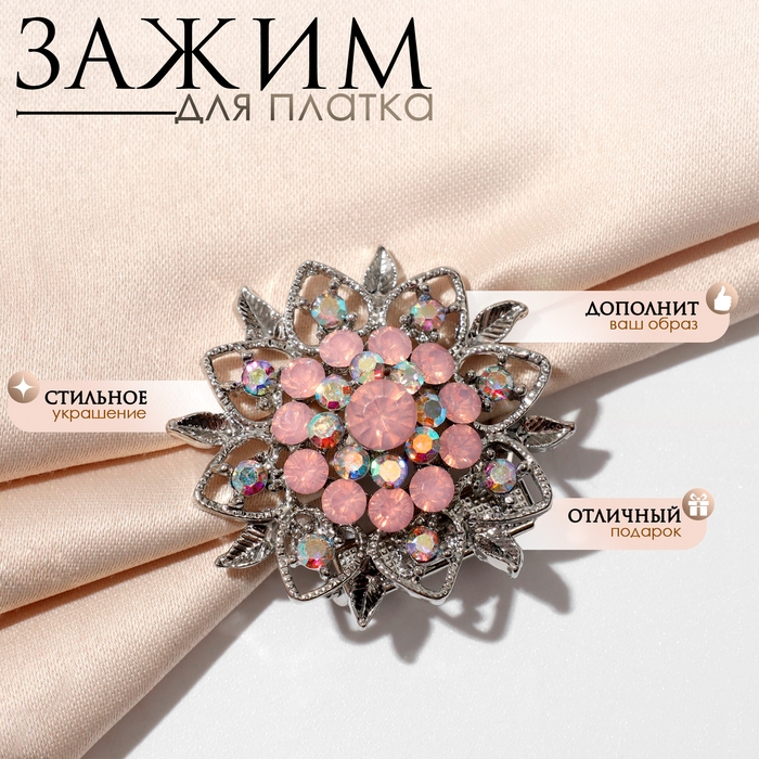 Зажим для платка «Цветок» изящный, цвет радужно-розовый в серебре