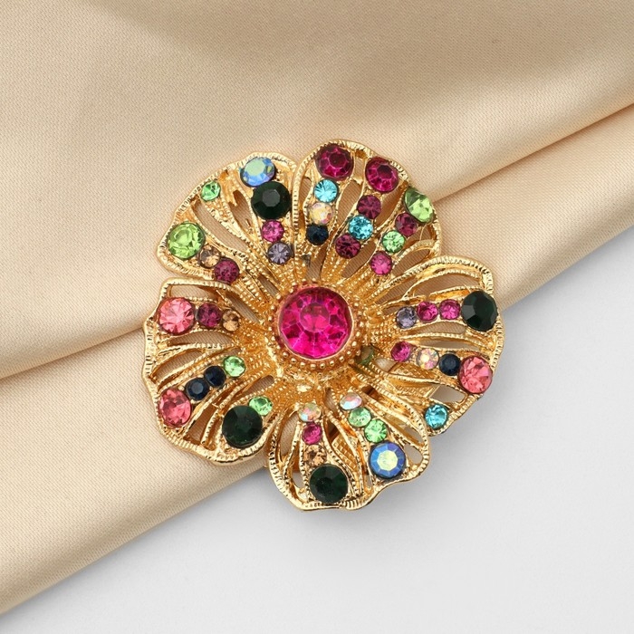 Зажим для платка «Цветок» волнистый, цветной в золоте
