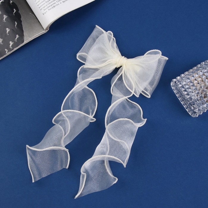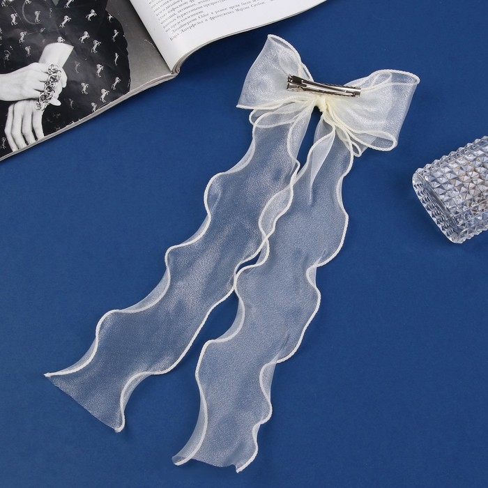 Зажим для волос "Школьница" бантик, 13х32 см, айвори