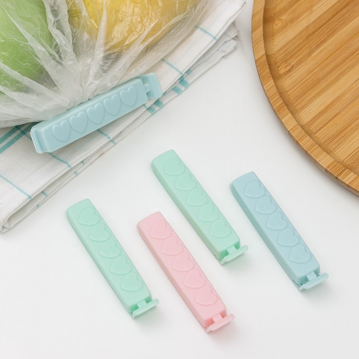 Набор зажимов для пакетов, 4×1,7 см, 4 шт, цвет МИКС