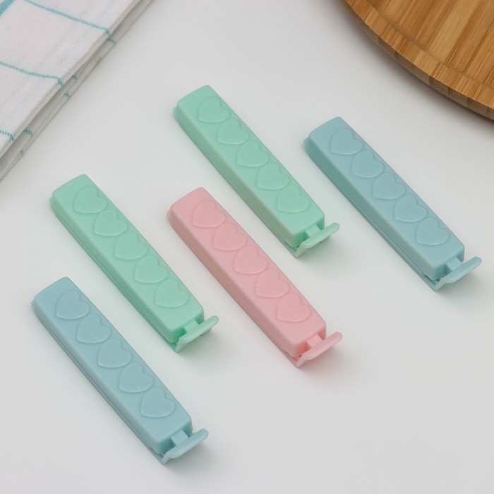 Набор зажимов для пакетов Доляна, 5,2×4 см, 5 шт, цвет МИКС