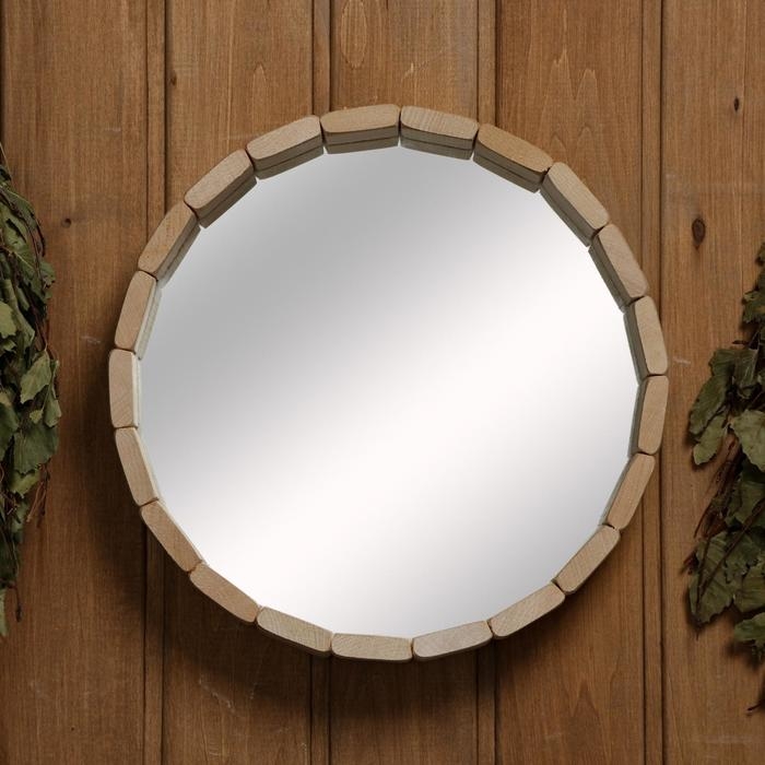 Такое зеркало подойдёт для бани и сауны. Дерево не выделяет вредных веществ при нагревании и подходит для помещений с высокой влажностью.