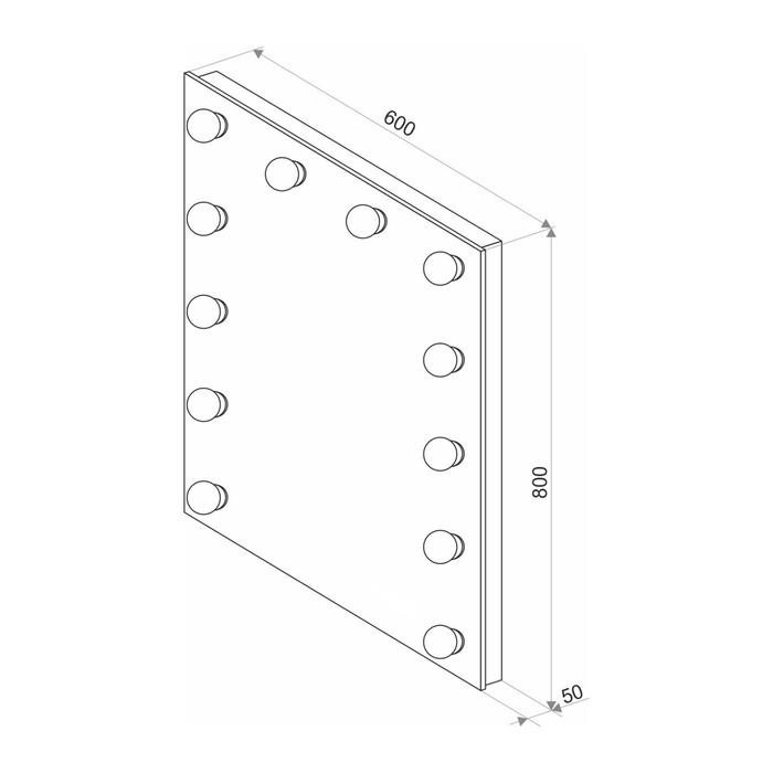 Зеркало, гримёрное, настенное, 11 лампочек, 80 х60 см