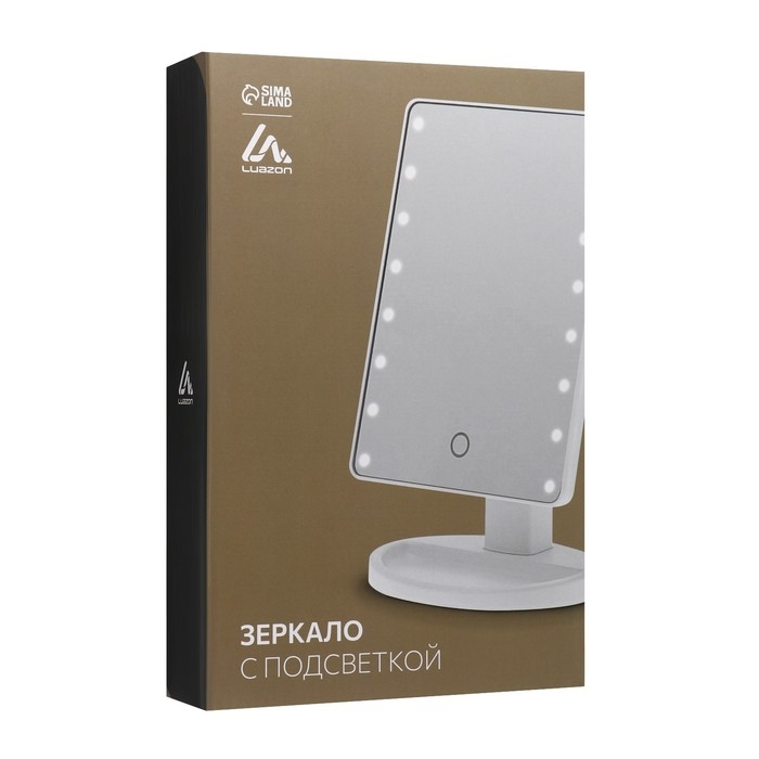 Зеркало Luazon KZ-06, подсветка, 26.5 х 16 х 12 см, 16 диодов, сенсорная кнопка, белое