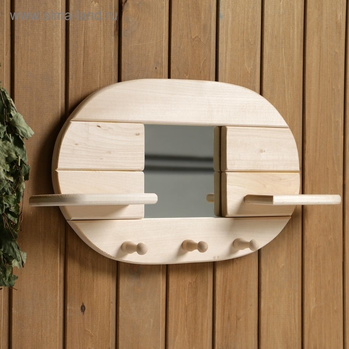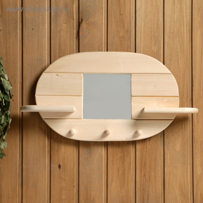 Зеркало "Овал", 3 крючка, сосна, натуральный, 54×29×10 см