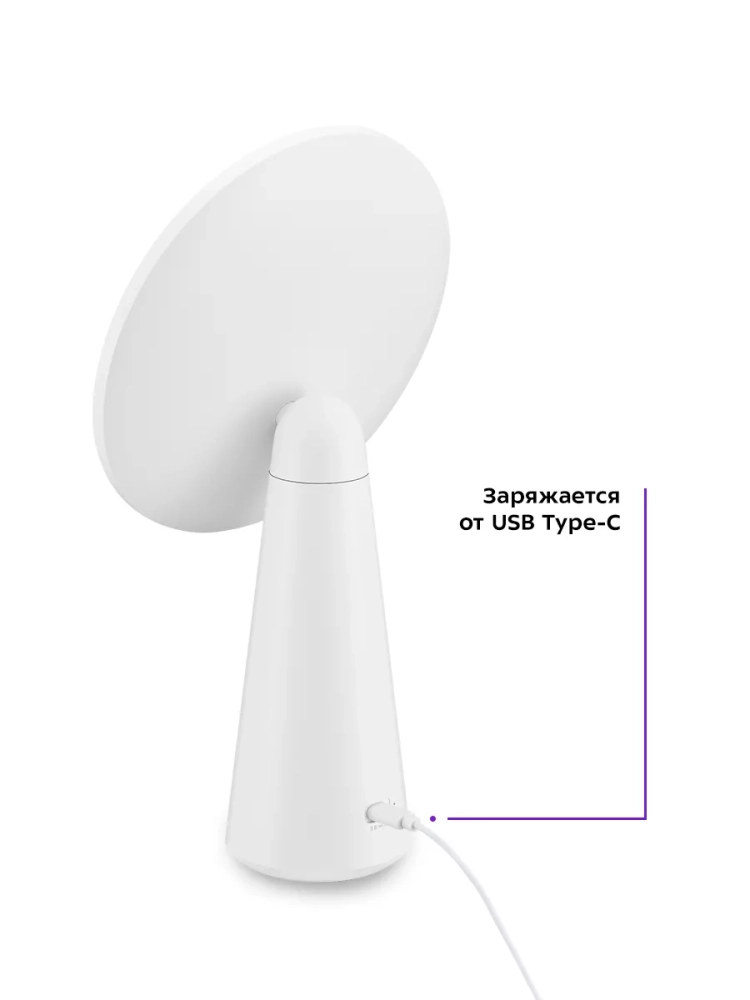 Подсветка зеркала работает от встроенного аккумулятора. Это позволяет пользоваться зеркалом и включать подсветку в любом удобном месте.