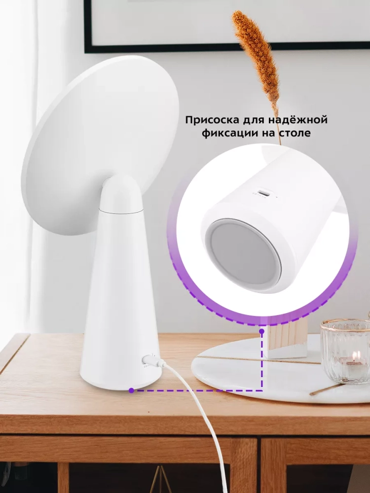 На основании есть силиконовая присоска, которая надежно фиксирует зеркало на столе. Это защищает зеркало от случайного падения.
