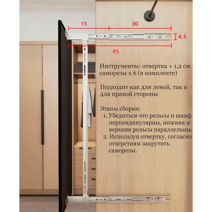 Зеркало выдвижное в шкаф на рельсах, 90 х 35см, белое