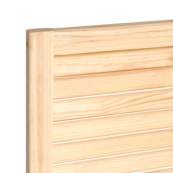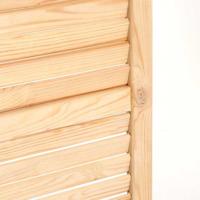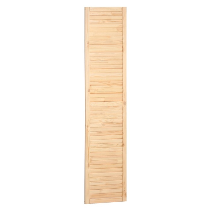 Жалюзийная дверь изготовлена из сосны. Такие двери используются в помещениях, где требуется постоянное проветривание. Также применять жалюзийный фасад можно для шкафов, тумбочек для ванной комнаты, на кухне, балконе или в кладовке. С помощью изделия легко создать уникальный дизайн мебели или обновить её внешний вид.