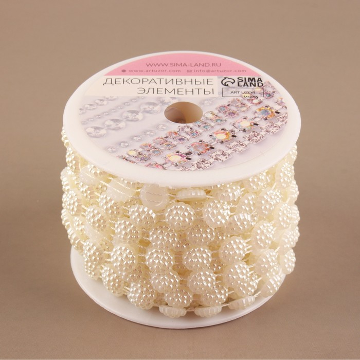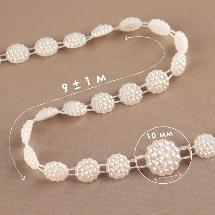 Жемчуг на нитях, плоский, 10 мм, 9 ± 1 м, цвет молочный