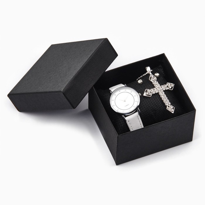 Подарочный набор "Эдди" состоит из наручных часов с диаметром циферблата 3 см, кулона и сережек. Станет прекрасным подарком на день рождения, на 8 марта, 14 февраля, и любой другой повод.