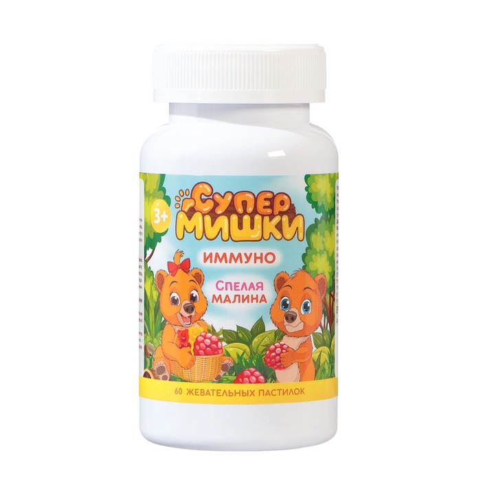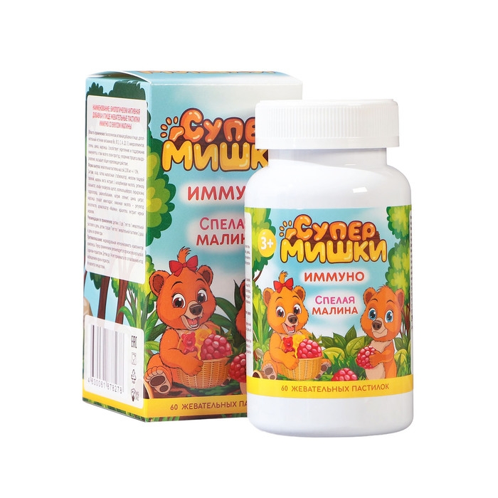 Жевательные пастилки Иммуно со вкусом малины - сбалансированный витаминно-минеральный комплекс в виде вкусных мармеладных пастилок-мишек с натуральными фруктовыми и овощными экстрактами для детей с 3-х лет.