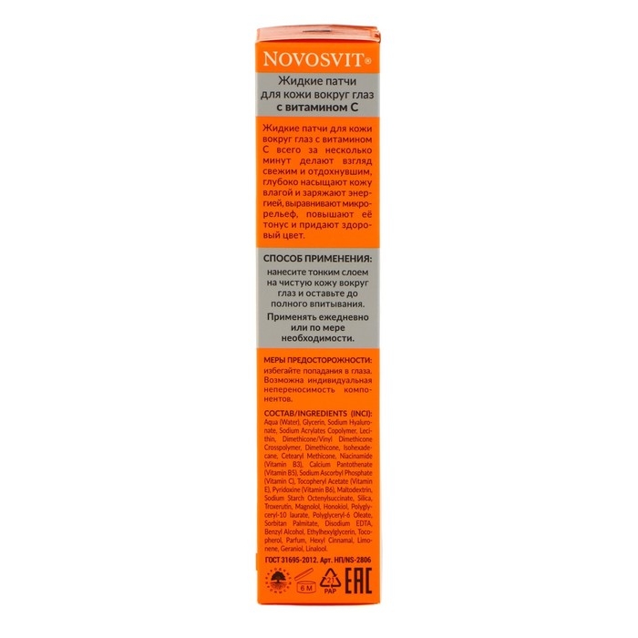 Жидкие патчи для кожи вокруг глаз с витамином С Novosvit экспресс восстановление, 30 мл